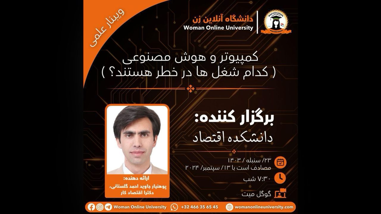 • Presenter: Professor Jawed Ahmad Golestani, PhD in Economics, Professor at Woman Online University;